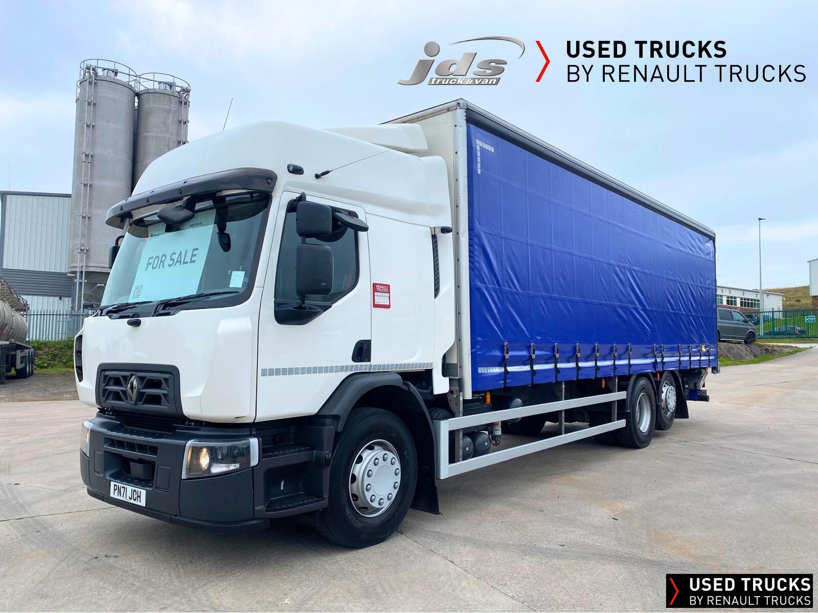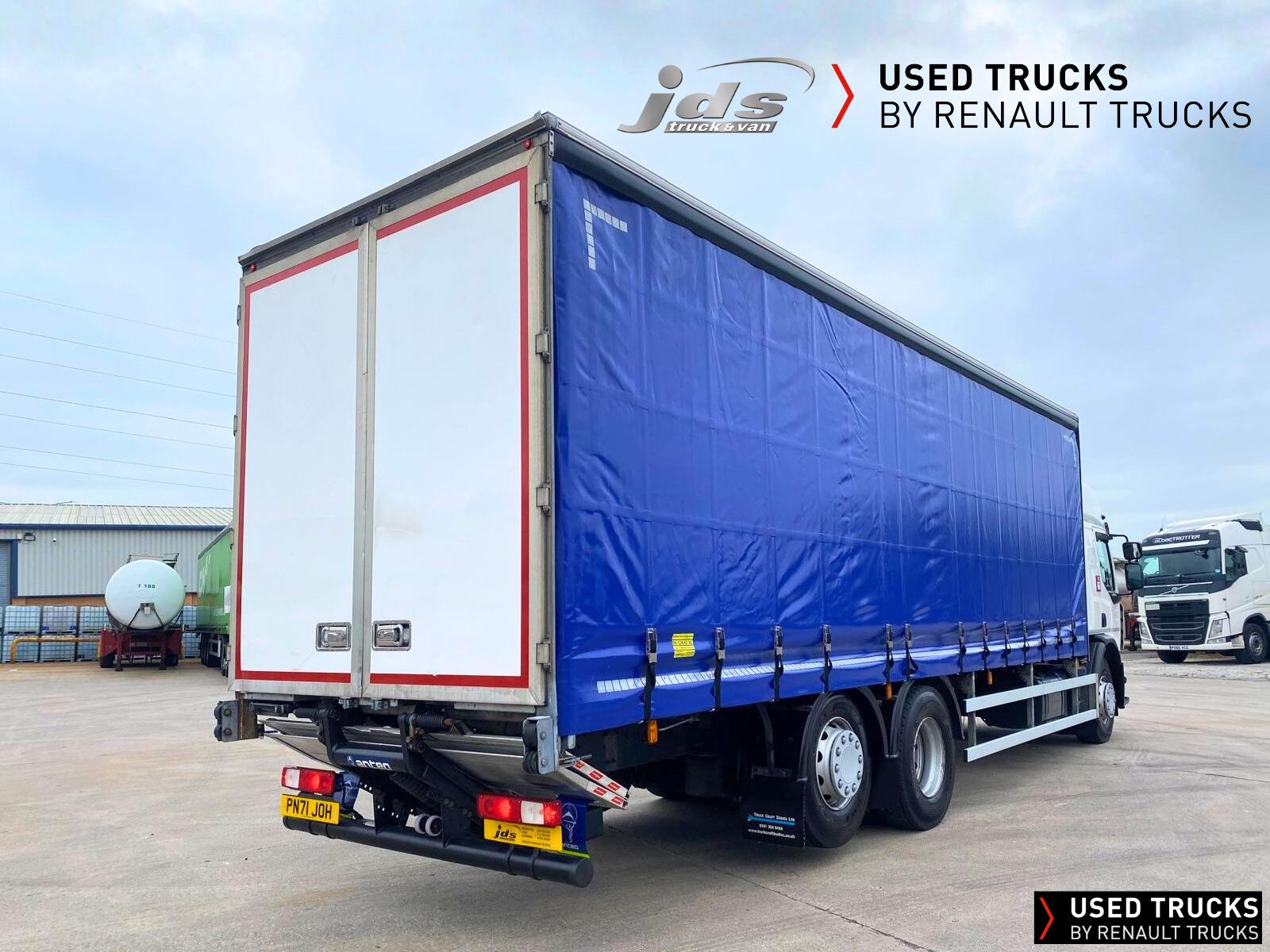 2021 (71) Renault D 26 Wide 6x2 Rear Lift Sleeper Cab Rigid. Fitted with a Curtainsider Body with Rear Barn Doors & 1500 kgs Anteo Tuckaway Taillift. Maintained on a Full Repair Maintenance Contract with FSH & just 299,379 kms! 320 BHP Euro 6 Engine, Auto Gearbox & Rear Air Suspension. High Roof Sleeper Cab with 4-Point Cab Air Suspension, Nightheater, Sunvisor & Air Deflector Kit. 8 Tonne Front Axle, Emergency Brake Assist & Emergency Brake Lights, Lane Departure Warning System, Electric Windows & Mirrors, Tinted & Laminated Windscreen & Windows, Upper Storage Cupboards, CB Pre-Equipment, Electrically Operated Roof Hatch, Air-Suspended Driver's Seat, Adjustable Passenger Seat, Cruise Control with Optiroll, 12/24v Sockets, Remote Central Locking, Running Lights, Reverse Buzzer with Night Switch, FMS Gateway Fleet Management Interface & Telematics Provision. London PSS Camera System Fitted
